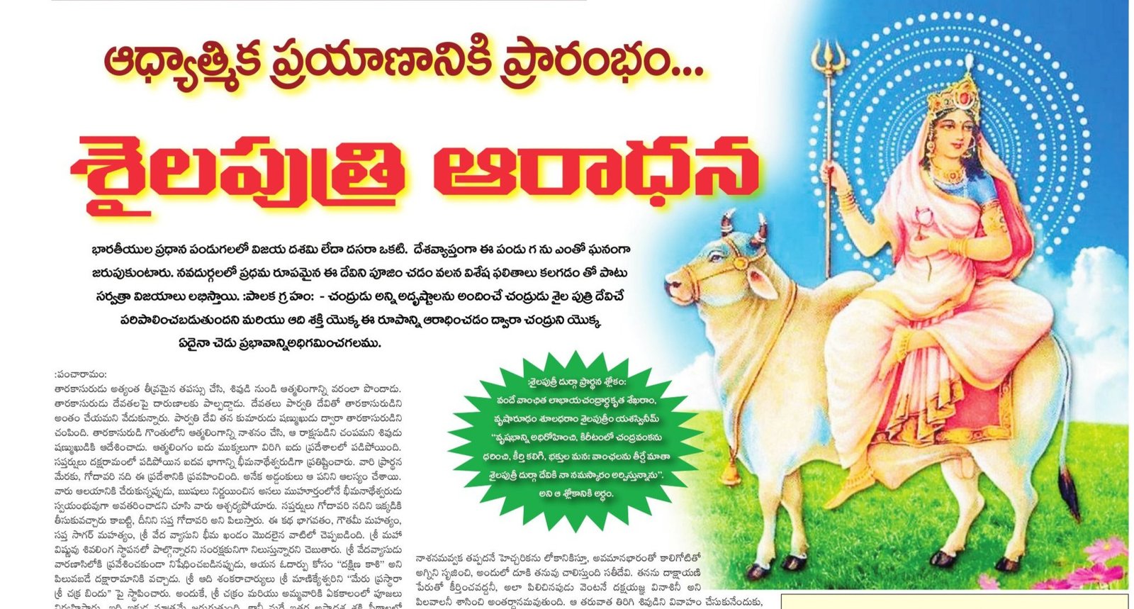 The Beginning of the Spiritual Journey… Shailaputri Worship …Day 1 ఆధ్యాత్మిక ప్రయాణానికి ప్రారంభం… శైలపుత్రి ఆరాధన …1వ రోజు