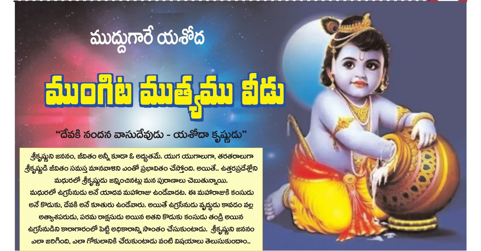 Article on the occasion Janmashtami 2025 describing the childhood of Lord Krishna.