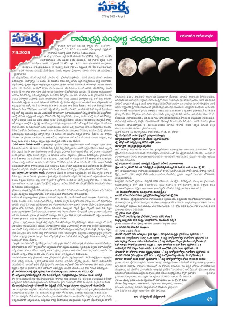 రాహుగ్రస్త సంపూర్ణ చంద్రగ్రహణం జ్యోతిష్య, ఆధ్యాత్మిక మరియు సాంస్కృతిక దృష్టికోణంలో మహత్తర ప్రాధాన్యం కలిగి ఉంది. ఈ వ్యాసంలో గ్రహణ ప్రభావాలు, ద్వాదశరాశులపై వాటి ఫలితాలు మరియు ప్రతికూల ప్రభావాలను తగ్గించే సంప్రదాయ పరిహారాలను తెలుసుకోండి.