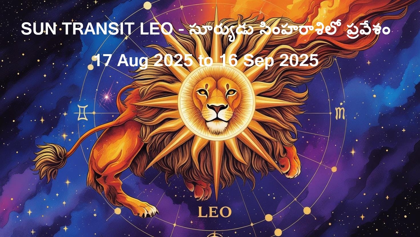 2025 ఆగస్టు 17 నుండి సెప్టెంబర్ 16 వరకు సూర్యుడు సింహరాశిలో సంచరిస్తూ అన్ని ద్వాదశరాశులపై చూపే ప్రభావాలు, జీవనశైలి, ఆరోగ్యం, వృత్తి, సంబంధాలపై మార్పులు మరియు శాంతి–శ్రేయస్సు కోసం చేయవలసిన పరిహారములు ఈ వ్యాసంలో తెలుసుకోండి.
